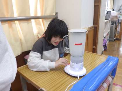 写真下 高等部「ワーク(紙すき)ミキサーがけ」