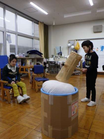 写真上 小学部 冬の遊び「もちつきあそび」