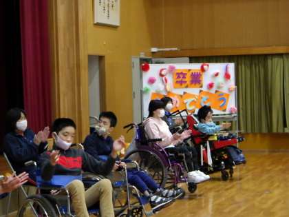 卒業生に向けてお祝いのダンスの披露や、クイズなど皆で盛り上がりました。思い出の写真のスライドを見て中学部での生活も振り返りました。卒業生から在校生へのメッセージのお礼の言葉を受けて、在校生皆からの温かい拍手と共に送りました。先輩と一緒に学習できる残りの時間を大切にしていきたいです。