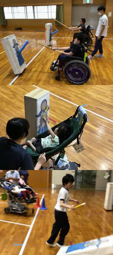 授業の様子 体育 剣道 その2(中学部) 公開日 2023/06/01 更新日 2023/06/01 中学部の様子 5月から体育の授業で剣道に取り組んでいます。面、胴、小手の各所をねらって腕や体を使ったいろいろな振り方に挑戦しています。 生徒は、剣道侍(段ボール製のキャラクター)相手に、生き生きと竹刀を振っています。今後は、試合をする予定です。