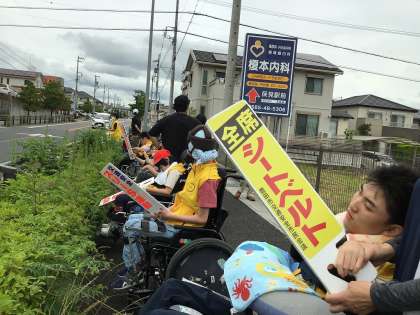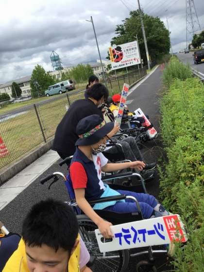 ボランティア活動を行いました(高等部) 公開日 2023/07/04 更新日 2023/07/04 高等部の様子 6月9日、ボランティア活動を行いました。生徒たちは、「シートベルト着用」のプラカードを掲げながら交通安全を呼びかけました。普段とは違う活動でしたが、一生懸命取り組むことができました。