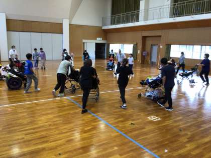 授業の様子 体育 フォークダンス その2(中学部) 公開日 2023/10/30 更新日 2023/10/30 中学部の様子 9月下旬より、体育の授業でフォークダンスに取り組んでいます。10月になり、新しい曲ジェンカに挑戦しています。今までのタタロチカとは違った体の動かし方、違った移動の動きで、楽しみながらできる良い運動になってます。 写真1枚目 先生から説明を受け、練習です。 写真2枚目 大きな輪になって、踊ります。 写真3枚目 小さな輪になって、踊ります。