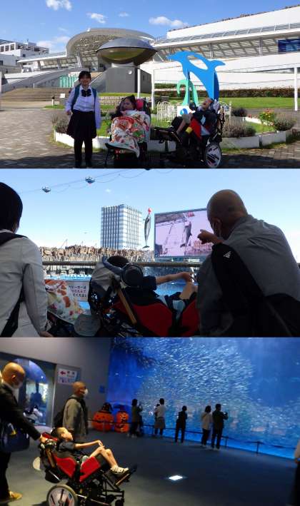 10月6日(金)中学部3年生が修学旅行に行きました。行先は名古屋港水族館と名古屋港ポートビルです。当日は、気持ち良い秋晴れになり、移動もスムーズに行えて、快適な修学旅行になりました。名古屋港水族館では、シャチの大きさに驚き、イルカのショーを楽しみ、様々な海の生物を間近に見学できました。昼食は、館内のレストランで大きな水槽の中の魚を見ながら、おいしいランチをいただきました。名古屋港ポートビルでは、7階までエレベーターで昇り、展望室で名古屋港からの景色を一望できました。帰校後は、解散式でバスの運転手さんにお礼の言葉を伝えて記念品を渡し、楽しかった修学旅行を締めくくることができました。