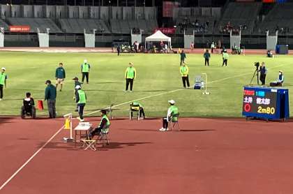 ソフトボール投げは、車椅子50mと同じ日の夕方からでしたが、自己記録を1mも伸ばすことができました。