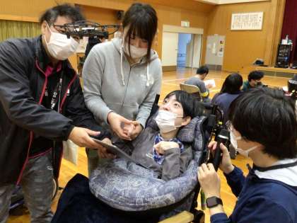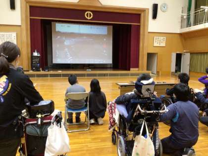 12月8日(金)に高等部教育課程Cで体験的な学習を行いました。今年度は、本校の地域コーディネーターからご紹介いただいたドローンスクールジャパン豊田校さんのご協力で、ドローンを学校上空に飛ばし、撮影した映像をアリーナのスクリーンで鑑賞したり、実際にドローンの操作を体験したりしました。