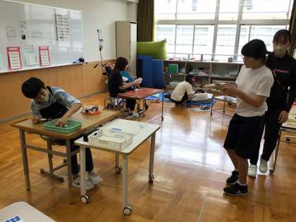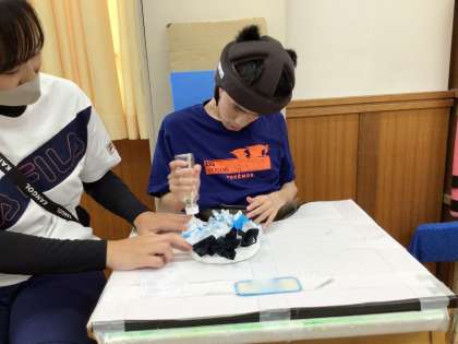 6月20日(木)、21日(金)に校内実習体験として、「株式会社 トヨスマ 〜TOYOTA SMILE CORPORATION〜」の社員となり、リース作りをしました。様々な柄の布を選び、発砲スチロールの土台にたくさん差し込んで飾りつけていきました。2日間で、3年生の力を合わせてたくさんのリースを作ることができました。11月のとよひま祭で販売されるかも!?お楽しみに♪
