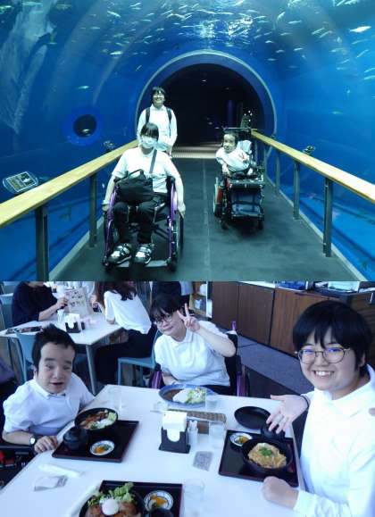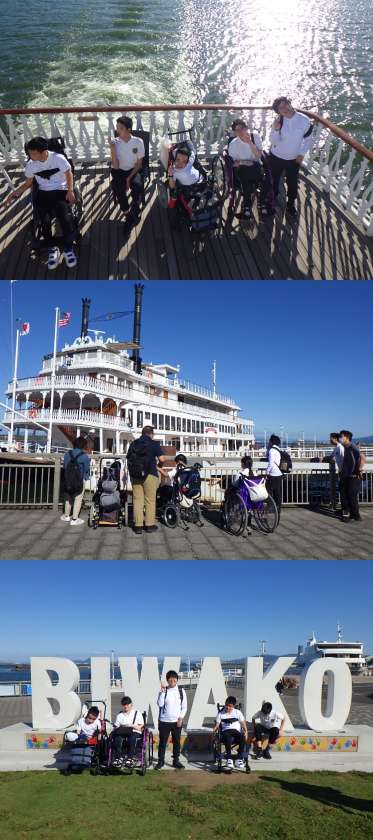 高等部3年生は、10月9日(木)〜10日(金)に滋賀県・琵琶湖へ1泊2日の修学旅行に出かけました。天候が心配されましたが、最高の天気に恵まれ、初日はミシガンクルーズで日本一の湖・琵琶湖の雄大な景色を堪能。2日目は井筒八ツ橋本舗で八ツ橋作りを体験し、琵琶湖博物館では昼食をとったり、琵琶湖に生息するさまざまな生き物の展示を見学したりしました。