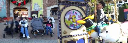 1日目は、天気に恵まれ、ラグナシアにて「マジカルパウダー」「3D水族館」など、アトラクションを楽しみました。食事会場にキャラクターのルナちゃんが会いに来てくれ、おいしくハヤシライスをいただきました。