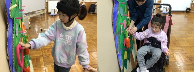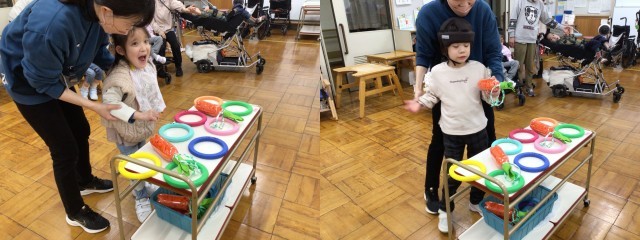 友達の様子をよく見て応援したり、好きな輪っかを選んだりと楽しく活動しています。